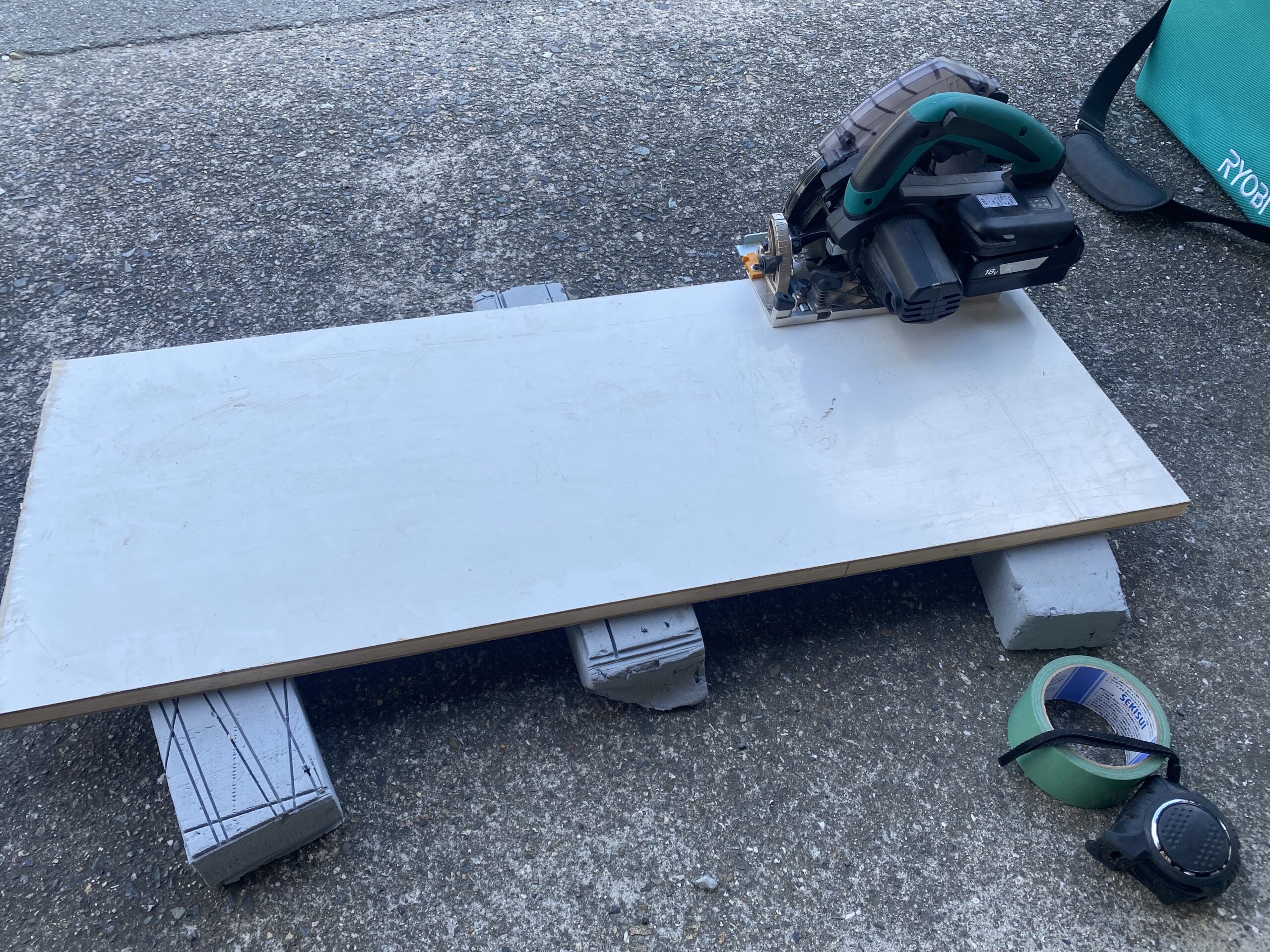 板も大きさが合えばなんでも良いということで、棚板だけカットして持って行ってきました。